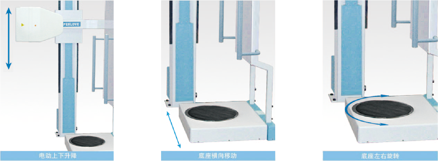 1、 电动上下升降、电动横向移动、电动旋转的功能,真正实现机动人不动的方式,使用方便、可靠。